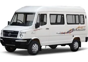 14+1 seater traveller suitable for team or family outings, available at ₹7,000/day.